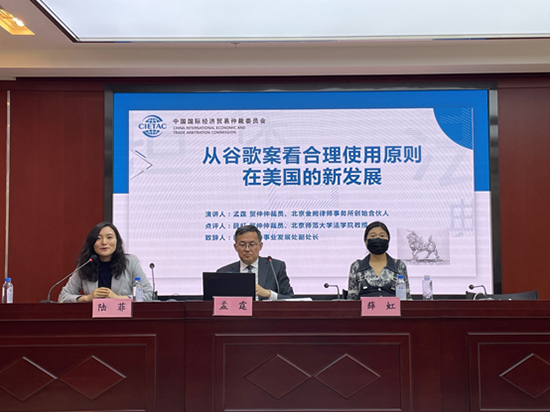 2021年6月9日,由貿(mào)仲舉辦的“從谷歌案看合理使用原則在美國的新發(fā)展”專題講座在北京順利舉行。本次講座特邀貿(mào)仲仲裁員、北京金闕律師事務(wù)所創(chuàng)始合伙人孟霆先生對谷歌公司與甲骨文公司之間長達十年的著作權(quán)之爭進行解讀,貿(mào)仲仲裁員、北京師范大學(xué)法學(xué)院教授薛虹女士對本案進行點評。近50位仲裁員、學(xué)者、律師及法律界人士在現(xiàn)場參加了此次講座。貿(mào)仲上海分會、西南分會、浙江分會、福建分會、絲路中心、江蘇中心、四川分會、山東分會以及海峽兩岸仲裁中心等在近十個城市設(shè)立分會場進行視頻同步連線。