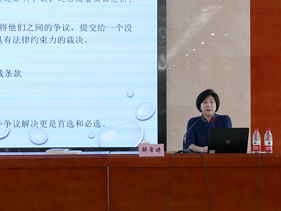 培訓環(huán)節(jié),解常晴副院長圍繞“仲裁解決商事爭議的優(yōu)越性”“訂立有效有利的仲裁條款與合同爭議解決法律風險控制” “仲裁條款訂立原則、策略和技巧”“企業(yè)參加仲裁程序應注意的關(guān)鍵問題 ”“中國貿(mào)仲的實踐與發(fā)展”五個方面展開講解。她從商事仲裁的起源、概念、特征入手闡明商事仲裁的基本內(nèi)涵,結(jié)合豐富的案例和數(shù)據(jù)詳細介紹了仲裁的優(yōu)越性,進而對企業(yè)訂立仲裁條款和參與仲裁程序應注意的問題進行重點提示和指導,并為中石油天然氣銷售系統(tǒng)爭議解決條款的訂立提出具體建議。解常晴副院長最后介紹了貿(mào)仲的歷史和發(fā)展成就,并表示新時代背景下,貿(mào)仲將積極發(fā)揮總分會整體的專業(yè)優(yōu)勢,努力為各地企業(yè)就近提供公正高效的仲裁服務。