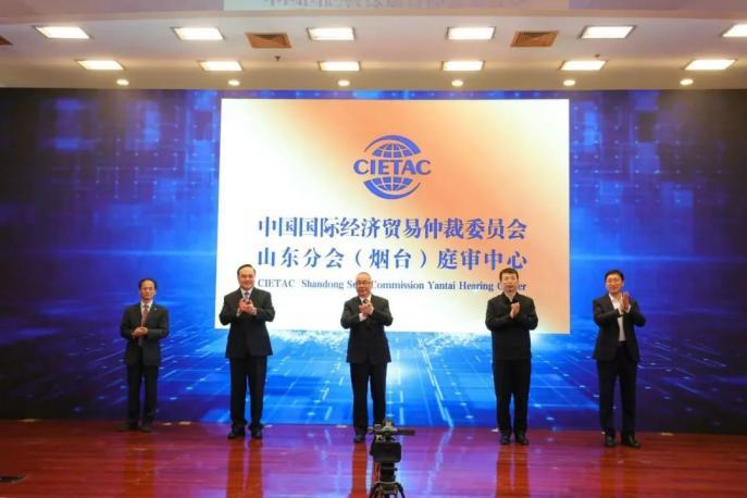[與會嘉賓共同啟動貿(mào)仲山東分會(煙臺)庭審中心]