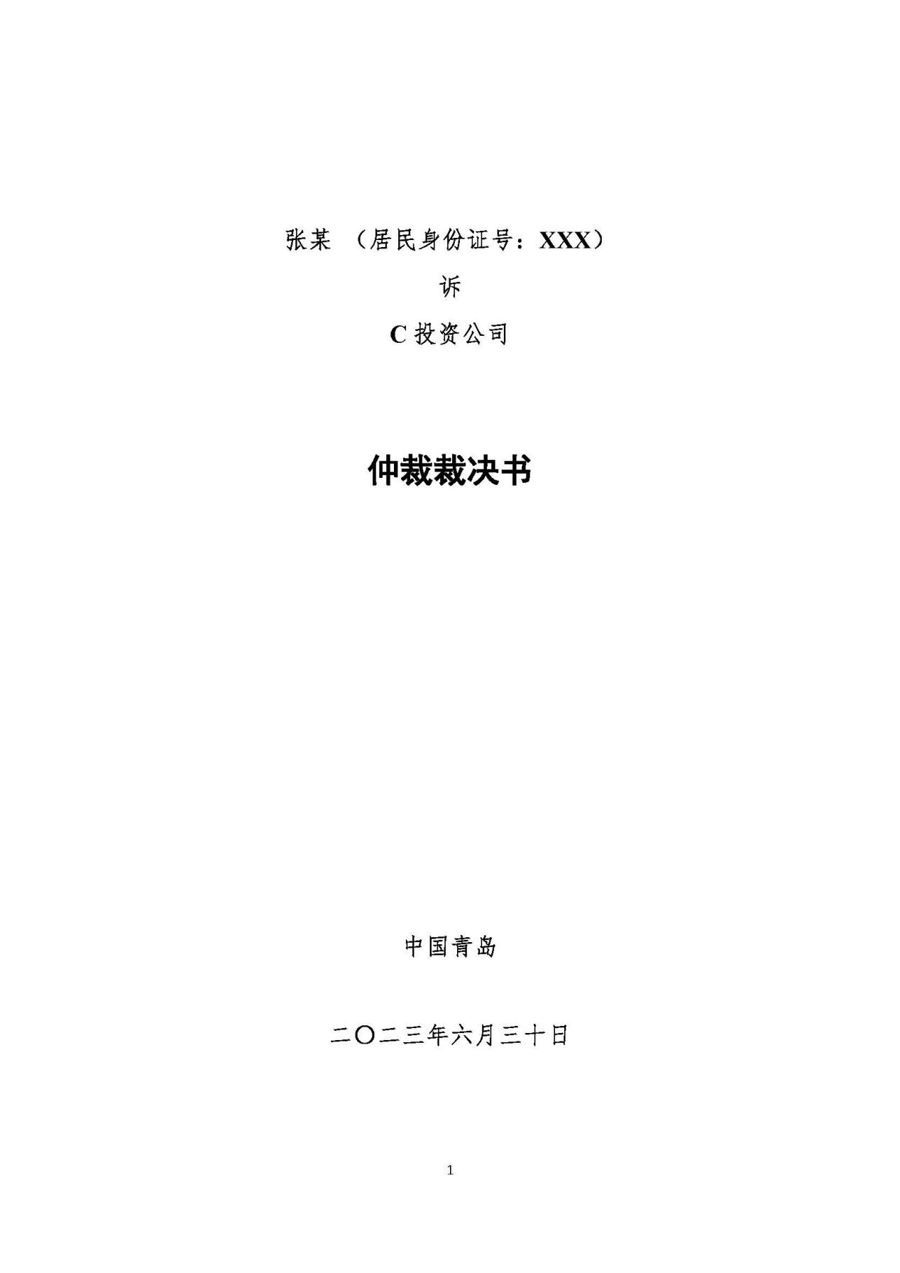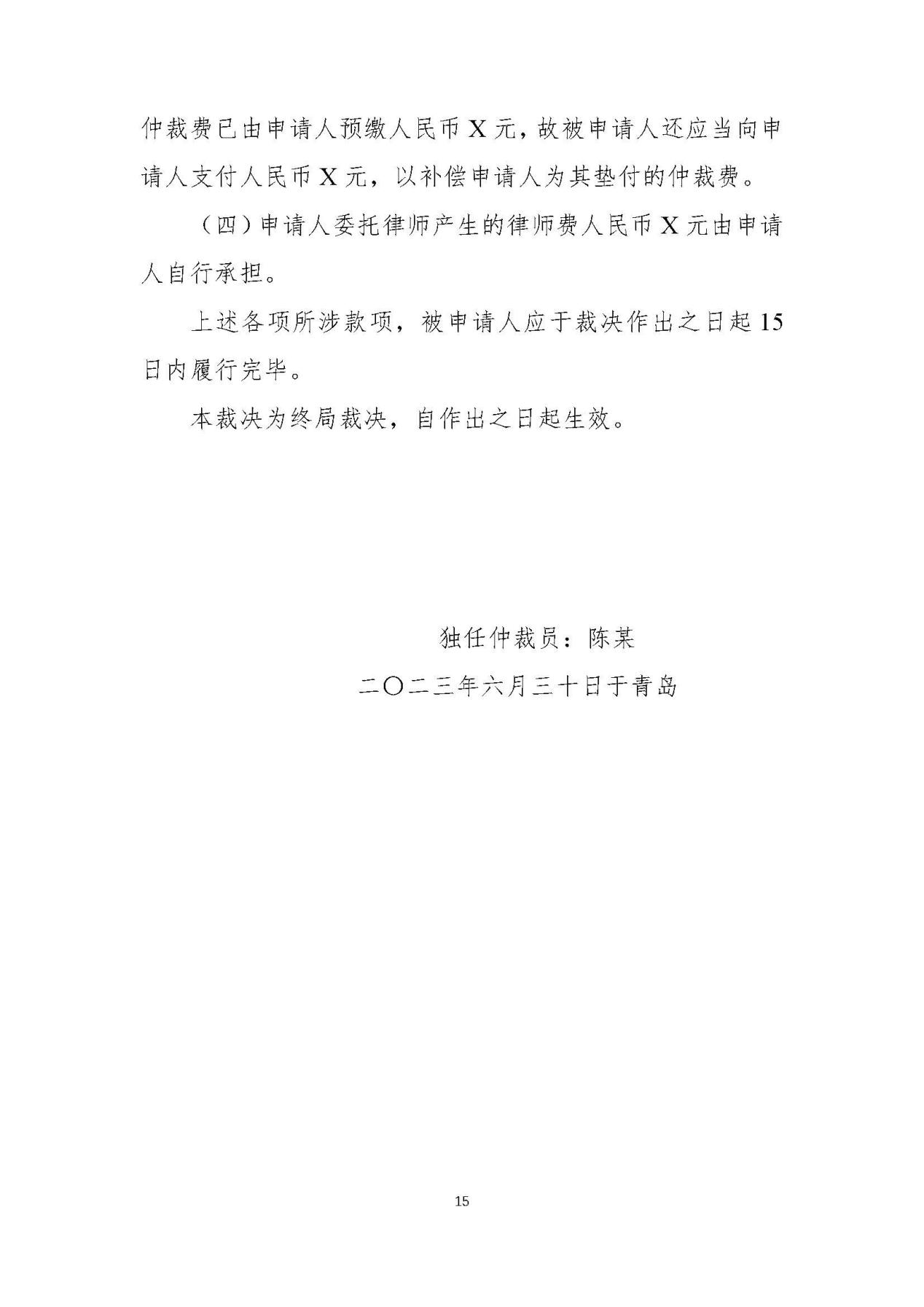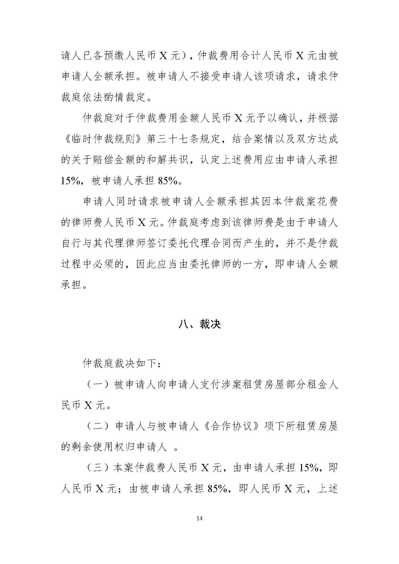 根據(jù)雙方當(dāng)事人約定,并經(jīng)征求本案仲裁員和雙方當(dāng)事人意見(jiàn),現(xiàn)將脫密處理后的裁決書(shū)予以公開(kāi)。