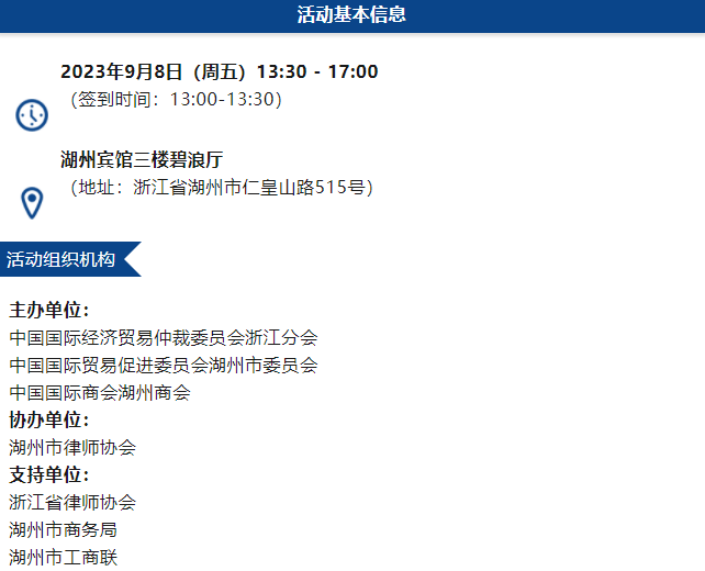 “中國仲裁周”是由中國國際經(jīng)濟貿(mào)易仲裁委員會等單位發(fā)起成立的以仲裁和爭議解決為主題的全國性活動平臺,歷經(jīng)十屆,系列活動得到社會各界的廣泛認可和積極參與,漸已成為國際上深具影響力的仲裁法律界活動之一。本次研討會是“中國仲裁周”首次在湖州舉辦專場活動,將進一步把商事仲裁推向大眾的視野,為企業(yè)等市場主體參與國際經(jīng)貿(mào)活動化解糾紛提供法律保障。