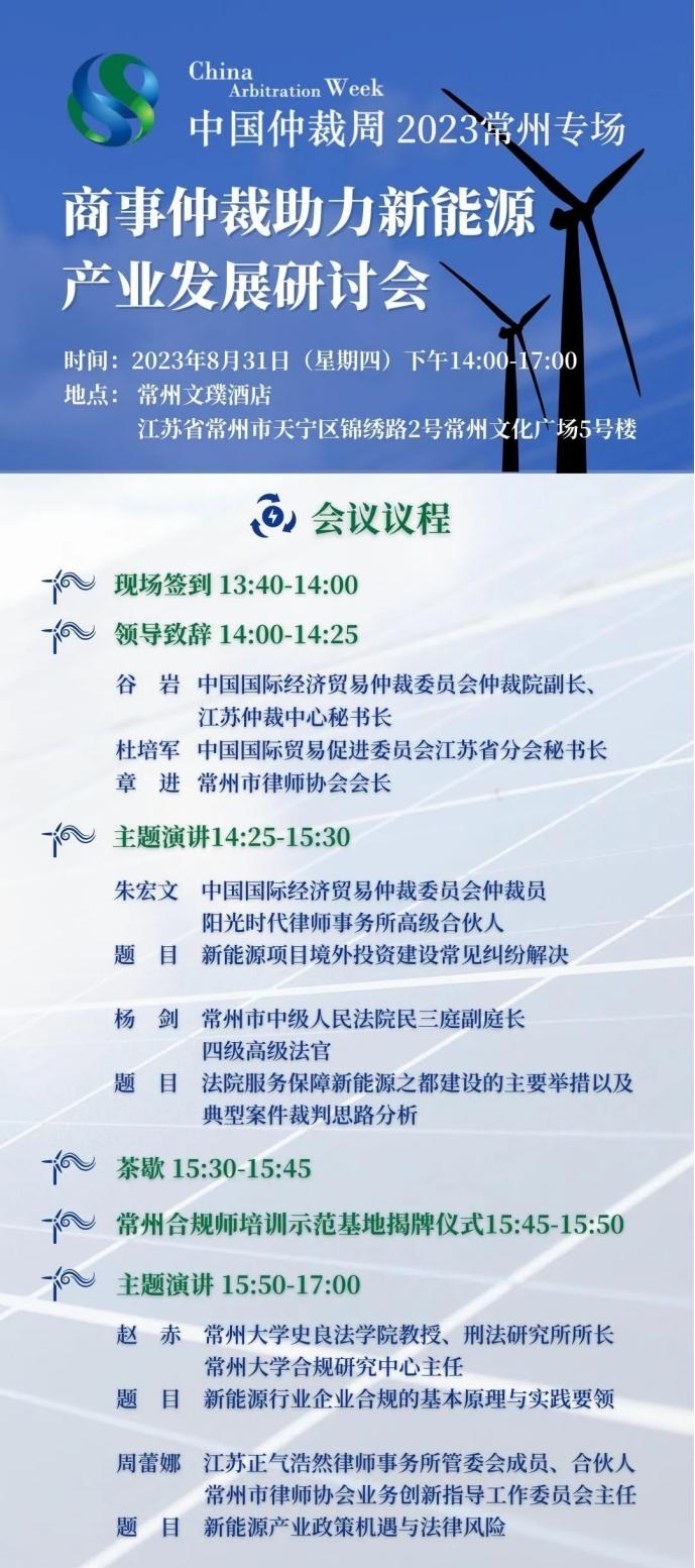 近年來,江蘇省常州市緊扣“國際化智造名城、長三角中軸樞紐”的城市定位,在新能源產(chǎn)業(yè)不斷發(fā)力,著力打造引領(lǐng)長三角,影響全國乃至全球的“新能源之都”。經(jīng)濟(jì)的蓬勃發(fā)展,產(chǎn)業(yè)的日益興旺,離不開良好的營商環(huán)境和制度化、規(guī)范化的法律保護(hù)措施。本次“中國仲裁周”常州專場活動——商事仲裁助力新能源產(chǎn)業(yè)發(fā)展研討會,將聚焦新能源產(chǎn)業(yè)熱點(diǎn)問題,幫助企業(yè)進(jìn)一步提升化解國內(nèi)外商事爭議的能力,推動建設(shè)公平、高效、法治的市場環(huán)境。