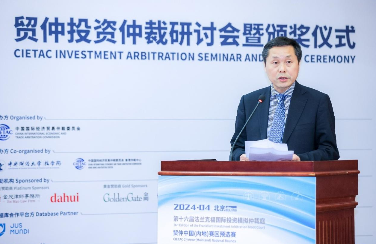 貿(mào)仲副主任兼秘書長王承杰、香港特別行政區(qū)政府律政司司長林定國、聯(lián)合國貿(mào)法會亞太區(qū)域中心主任Athita Komindr以及中央財經(jīng)大學副校長栗崢教授致辭并頒獎。