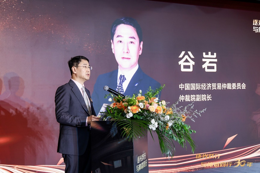 谷巖進(jìn)行主旨演講。他表示,1994年仲裁法頒布,中國確立了統(tǒng)一、規(guī)范、符合國際慣例的仲裁制度,中國仲裁事業(yè)翻開了嶄新一頁,進(jìn)入快速發(fā)展的新的歷史階段,取得了顯著成就:第一,案件管理主要指標(biāo)屢創(chuàng)歷史新高,受案數(shù)量、涉案爭議金額、當(dāng)事人國別數(shù)均位居國際前列;第二,保持仲裁規(guī)則與國際最新仲裁理論和實(shí)踐發(fā)展的同步;第三,培育了一支高水平國際化專業(yè)化的仲裁員隊(duì)伍;第四,多元化爭議解決服務(wù)形成新格局。結(jié)合仲裁法的歷史成就以及貿(mào)仲的實(shí)踐經(jīng)驗(yàn)。對(duì)于仲裁法和中國仲裁事業(yè)的未來發(fā)展,他提出值得總結(jié)和發(fā)揚(yáng)的三個(gè)“堅(jiān)持”:堅(jiān)持國際化與本土化相結(jié)合;堅(jiān)持法律剛性與規(guī)則柔性相統(tǒng)一;堅(jiān)持推進(jìn)仲裁生態(tài)文化培育。