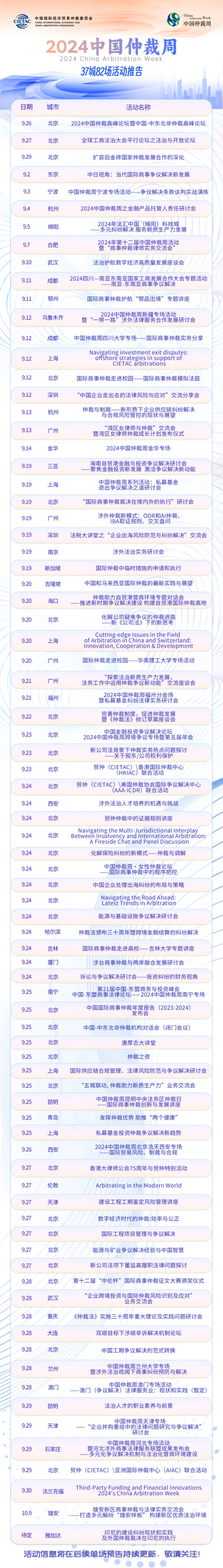 繼往開來啟新程,砥礪前行續(xù)華章。第十二屆中國仲裁周帷幕已拉開,多場活動正如期籌備。讓我們攜手在仲裁法治建設(shè)的新征程上,以遠(yuǎn)見,共謀中國仲裁深遠(yuǎn)之發(fā)展,以篤行,共履國際商事仲裁不怠之擔(dān)當(dāng)。