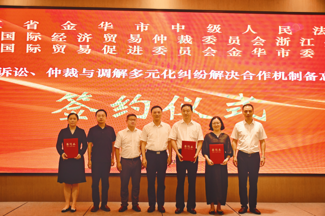 為公平、高效、便捷化解各類商事糾紛,貿(mào)仲浙江分會與金華市中級人民法院、金華市貿(mào)促會共同推進(jìn)建立行之有效的訴訟、仲裁、調(diào)解對接與糾紛多元化解機(jī)制,在本次活動中簽署《關(guān)于訴訟、仲裁與調(diào)解多元化糾紛解決合作機(jī)制備忘錄》。各方將進(jìn)一步探索和創(chuàng)新工作體制,完善多元化商事爭議服務(wù)體系,打造法治化、國際化、專業(yè)化營商環(huán)境,為金華市企業(yè)開展國際經(jīng)貿(mào)業(yè)務(wù)保駕護(hù)航。