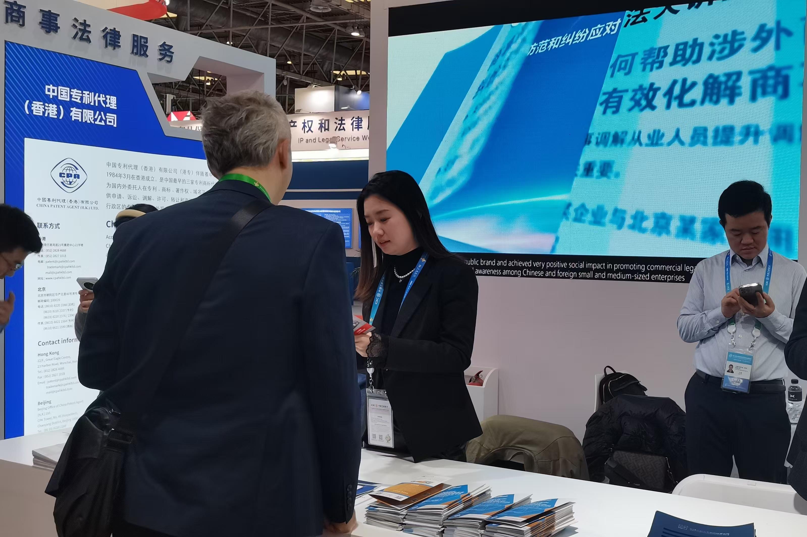在“中國貿(mào)促會商事法律服務(wù)”展區(qū),除貿(mào)仲外,記者還看到中國貿(mào)促會所屬的其他商事法律服務(wù)機構(gòu),如中國海事仲裁委員會、中國貿(mào)促會專利商標(biāo)事務(wù)所、中國專利代理(香港)有限公司(以下簡稱“港專公司”),中國仲裁法學(xué)研究會和中國貿(mào)促會商事法律服務(wù)中心。他們均是上述展臺的組成機構(gòu)。