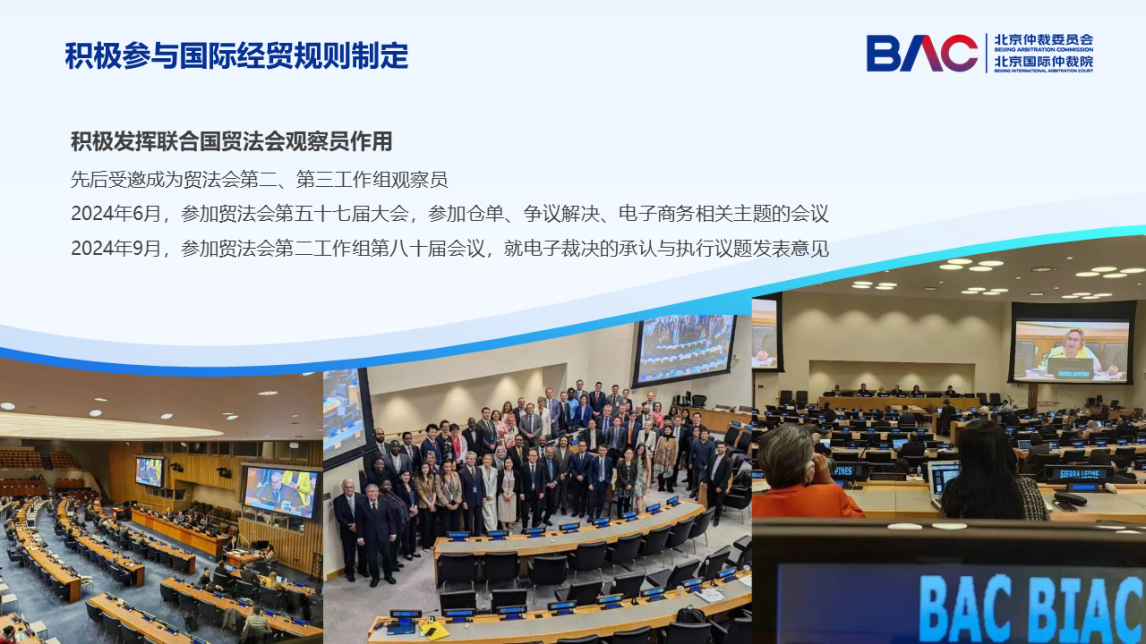 在全球化的背景下,北仲積極發(fā)揮聯(lián)合國貿(mào)法會觀察員作用,參與國際經(jīng)貿(mào)規(guī)則制定,不斷貢獻(xiàn)自己的研究成果和實踐經(jīng)驗,持續(xù)在國際舞臺發(fā)出中國聲音,展現(xiàn)中國仲裁機(jī)構(gòu)專業(yè)、開放、包容的國際形象。