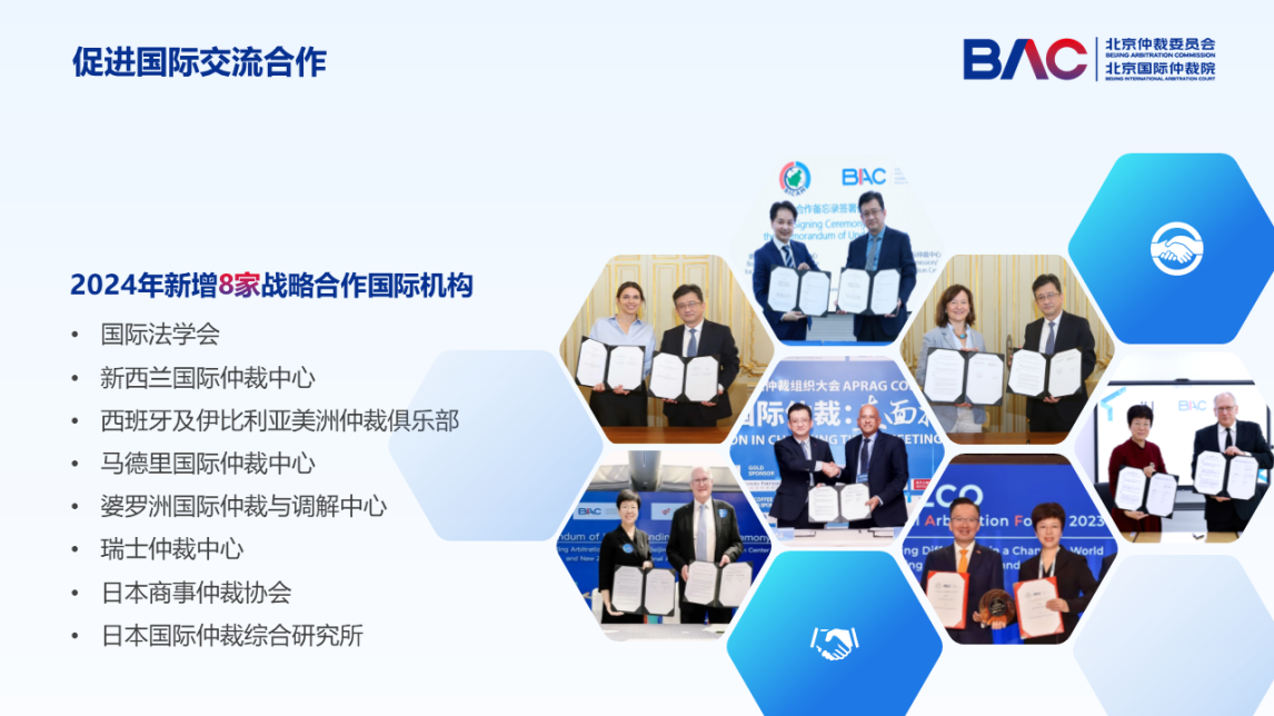 今年,新增戰(zhàn)略合作國際機(jī)構(gòu)8家,進(jìn)一步擴(kuò)大了北仲的國際朋友圈。通過以上活動,北仲不僅加強(qiáng)了國際交流與合作,也顯著提升了中國仲裁的國際影響力,為推動全球仲裁法律服務(wù)發(fā)展做出積極貢獻(xiàn)。
