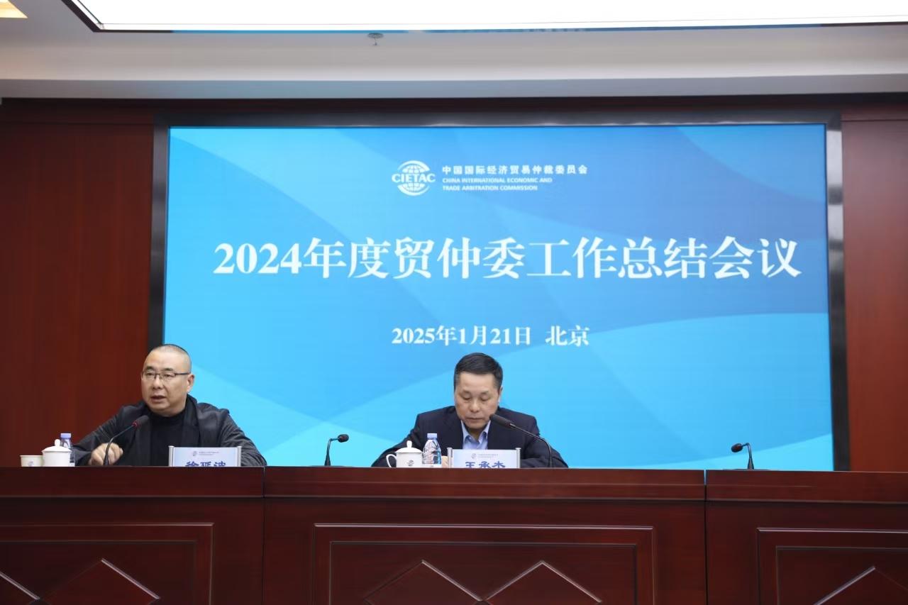 2025年1月21日,貿(mào)仲委2024年度干部職工總結(jié)大會在京召開。貿(mào)仲委全體領(lǐng)導(dǎo)班子成員、總分會干部職工齊聚一堂,共同回顧2024年工作成果,分析面臨的新形勢,全面部署2025年重點(diǎn)工作任務(wù)。貿(mào)仲委副主任兼秘書長王承杰作2024年工作報告,貿(mào)仲委黨委書記徐延波主持會議。