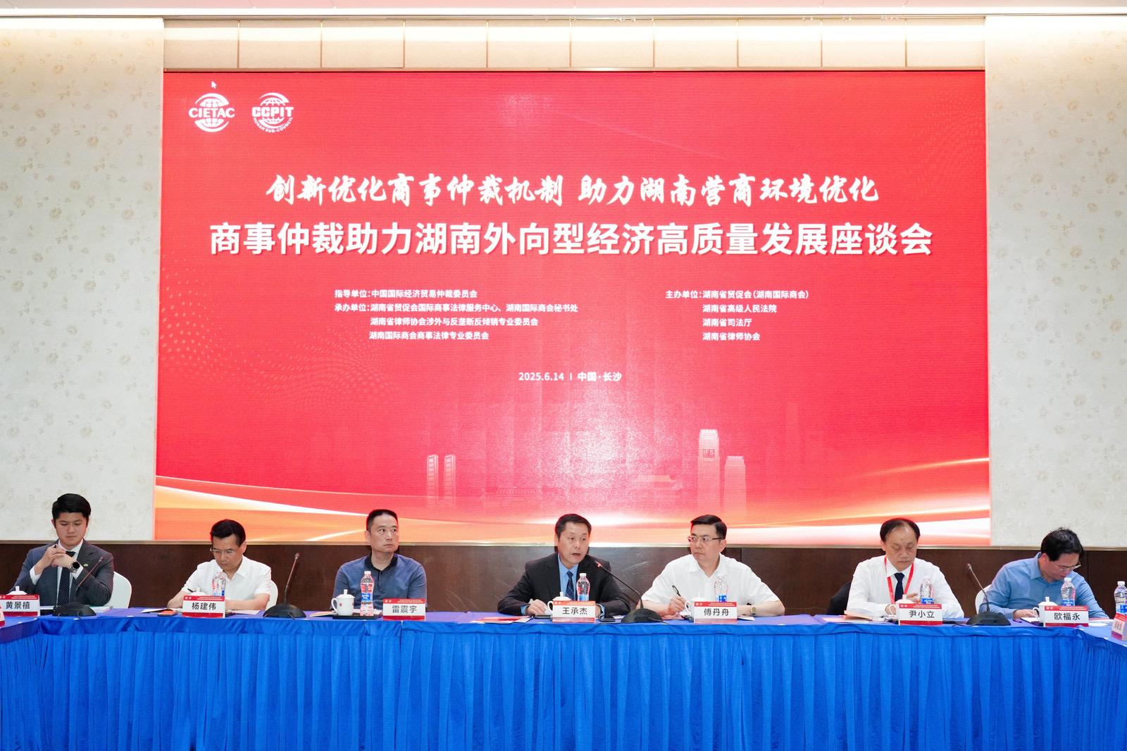 6月14日,商事仲裁助力湖南外向型經(jīng)濟(jì)高質(zhì)量發(fā)展座談會在湖南省長沙市成功舉辦。本次座談會由中國國際經(jīng)濟(jì)貿(mào)易仲裁委員會(簡稱貿(mào)仲)指導(dǎo),湖南省貿(mào)促會(湖南國際商會)、湖南省高級人民法院、湖南省司法廳、湖南省律師協(xié)會共同主辦。貿(mào)仲副主任兼秘書長王承杰、湖南省司法廳副廳長雷震宇、湖南省高級人民法院審判委員會專職委員尹小立、湖南省律師協(xié)會會長楊建偉、澳門法律交流協(xié)進(jìn)會會長黃景禧以及湖南師范大學(xué)法學(xué)院副院長歐福永參加座談會并講話。湖南省貿(mào)促會黨組成員、副會長傅丹舟主持座談會。來自湖南省重點(diǎn)涉外企業(yè)及律師事務(wù)所的負(fù)責(zé)人和資深專家以及來自政府部門、行業(yè)協(xié)會、高校共40余位代表參加了座談會。