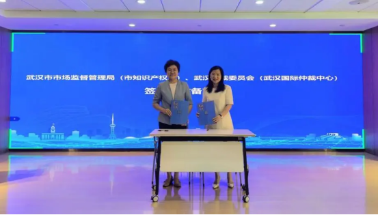 簽約儀式環(huán)節(jié),武漢市市場監(jiān)督管理局(武漢市知識產(chǎn)權(quán)局)黨組成員、副局長夏蕾和武漢仲裁委辦黨組書記、主任羅平分別代表雙方單位簽署合作備忘錄。