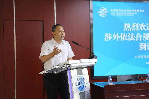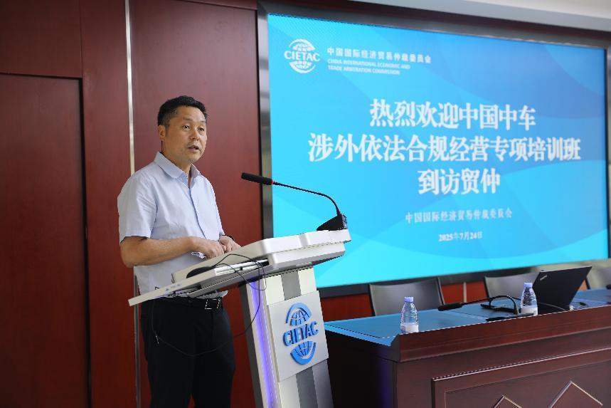 7月24日,中國中車集團(tuán)有限公司(簡稱“中車集團(tuán)”)涉外依法合規(guī)經(jīng)營專項(xiàng)培訓(xùn)班學(xué)員到訪中國國際經(jīng)濟(jì)貿(mào)易仲裁委員會(簡稱“貿(mào)仲”)并開展交流學(xué)習(xí)。貿(mào)仲副主任兼秘書長王承杰,中國人民大學(xué)法學(xué)院副院長丁曉東,中車集團(tuán)法律部部長張世東出席活動并先后致辭。