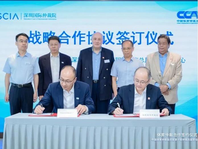 丁濤代表中國(guó)體育仲裁委員會(huì)及國(guó)家體育總局體育仲裁中心,劉曉春代表深圳國(guó)際仲裁院(粵港澳大灣區(qū)國(guó)際仲裁中心)簽署戰(zhàn)略合作協(xié)議,以服務(wù)體育強(qiáng)國(guó)建設(shè)和促進(jìn)國(guó)際著名體育城市建設(shè)為目標(biāo)開(kāi)展深度合作、協(xié)同創(chuàng)新。梁定邦、張劍、盧松、熊德昌、王桂壎共同見(jiàn)證簽約。