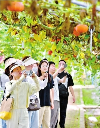 市農(nóng)科院北部園區(qū)新鮮奇特的蔬菜品種繁多,市民代表紛紛拿出手機拍照。