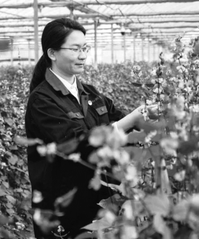 上海市浦東新區(qū)“巾幗新農(nóng)人”、上海紅剛青扁豆生產(chǎn)專(zhuān)業(yè)合作社總經(jīng)理王黎娜在管理青扁豆。