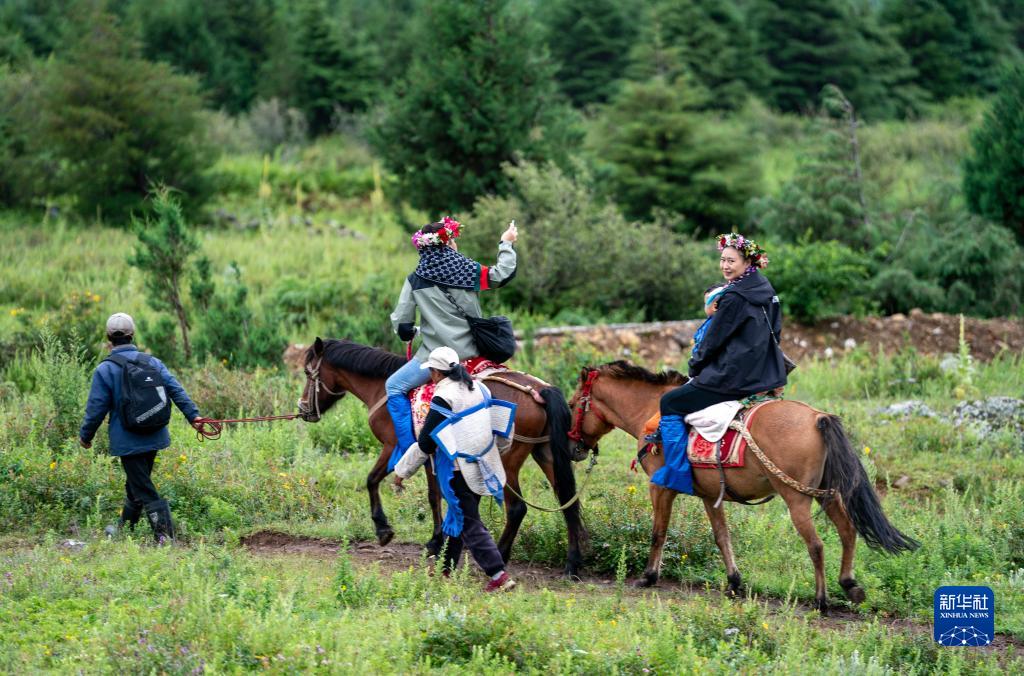 游客在麗江市玉龍納西族自治縣白沙鎮(zhèn)玉湖村體驗騎馬(8月28日攝)。記者 陳欣波 攝