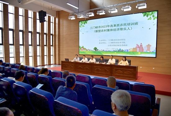 近日,河南省三門峽市2023年高素質(zhì)農(nóng)民培訓(陽店)班(新型農(nóng)村集體經(jīng)濟帶頭人)在三門峽市職業(yè)技術(shù)學院順利開班。來自陽店鎮(zhèn)的各村(社區(qū))黨支部書記、農(nóng)村集體經(jīng)濟帶頭人和農(nóng)民合作社負責人共計50余人參加了培訓。三門峽市農(nóng)業(yè)農(nóng)村局黨組成員、副局長鄭鋆,市職業(yè)技術(shù)學院正縣級干部李贊祥,陽店鎮(zhèn)黨委書記種凱明,陽店鎮(zhèn)黨委副書記、鎮(zhèn)長孫強,市農(nóng)業(yè)農(nóng)村局科教科科長朱曉宇等出席了開班儀式。
