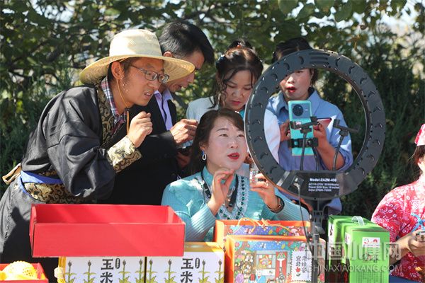宜君縣哭泉梯田舉辦玉米蘋果豐收季網(wǎng)紅直播帶貨活動(宜君縣經(jīng)貿(mào)局供圖)