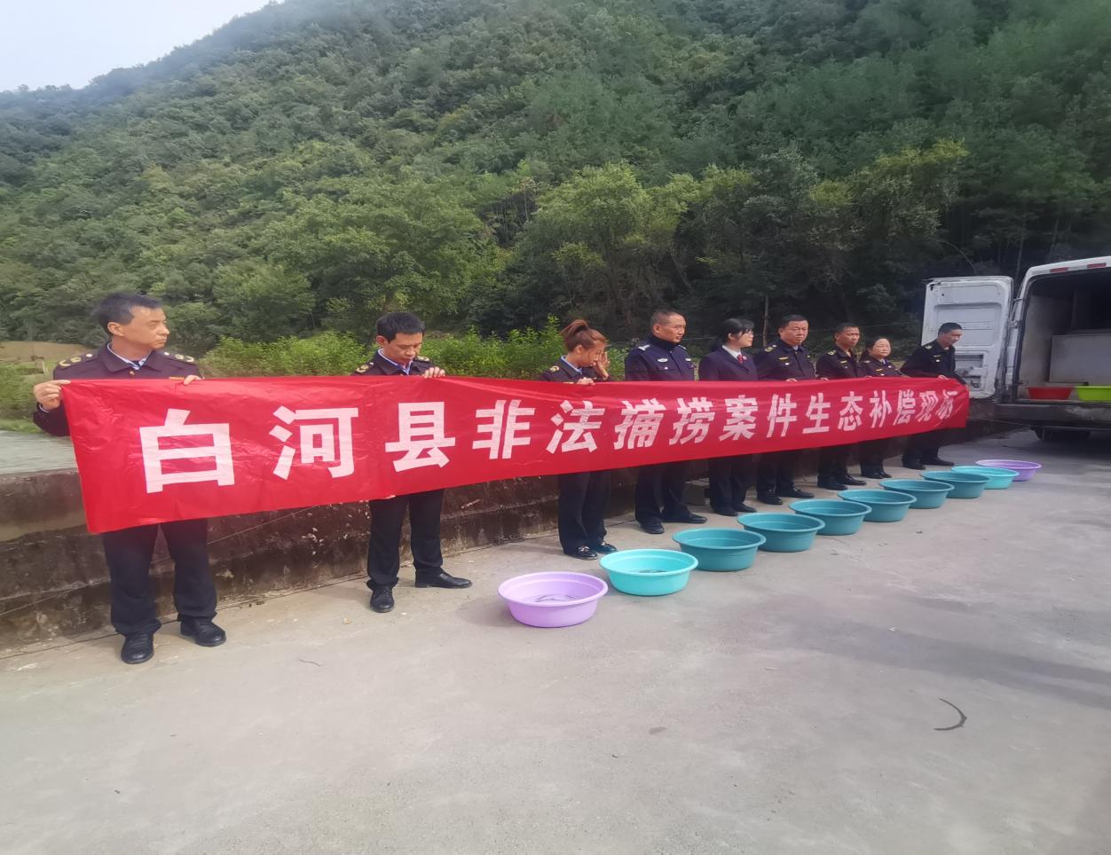 為助力漢江流域生態(tài)環(huán)境修復(fù),營造保護(hù)生態(tài)環(huán)境的良好氛圍,近日,陜西省安康市白河縣人民檢察院、縣公安局、縣農(nóng)業(yè)農(nóng)村局在漢江支流白石河河段,聯(lián)合開展以“白河縣非法捕撈案件生態(tài)補(bǔ)償”為主題的魚苗增值放流活動,督促兩起非法捕撈水產(chǎn)品案的涉案當(dāng)事人履行生態(tài)修復(fù)義務(wù)。
