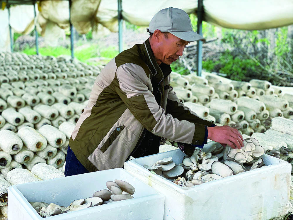 家庭農(nóng)場(chǎng)的主人喬吉科正帶領(lǐng)農(nóng)場(chǎng)工人采摘平菇,他們動(dòng)作嫻熟且規(guī)范有序,將摘下來(lái)的蘑菇放入塑料泡沫箱內(nèi),稱重后裝車,隨后銷往縣城各菜鋪及學(xué)校食堂等地。