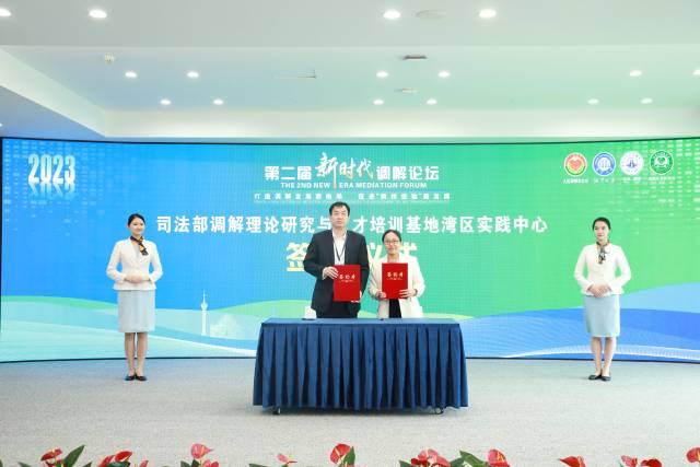 開幕式上,人民調(diào)解雜志社副總編輯孟婷婷宣讀了第二屆新時(shí)代調(diào)解論壇征文獲獎(jiǎng)名單,與會(huì)領(lǐng)導(dǎo)為獲獎(jiǎng)作者頒獎(jiǎng)。本次征文共評出一等獎(jiǎng)?wù)撐?篇、二等獎(jiǎng)15篇、三等獎(jiǎng)25篇、優(yōu)秀獎(jiǎng)20篇,其后舉行了“司法部調(diào)解理論研究與人才培訓(xùn)基地灣區(qū)實(shí)踐中心”簽約與揭牌儀式。