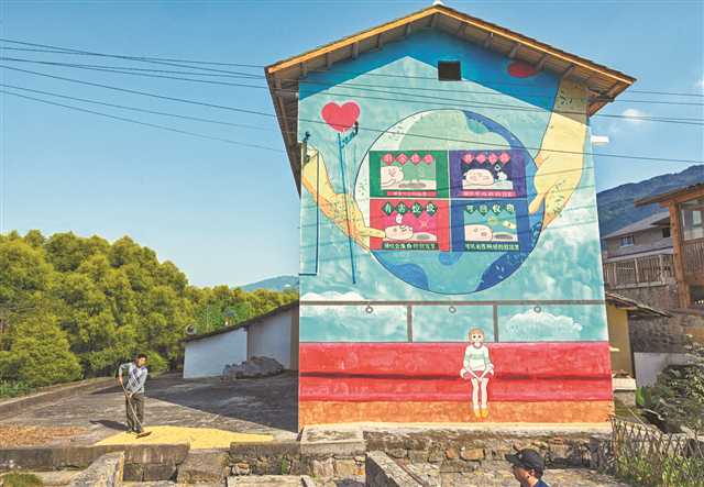 藝術家在北碚區(qū)柳蔭鎮(zhèn)東升村設計的墻繪,與周遭環(huán)境相融相洽 記者 萬難 攝
