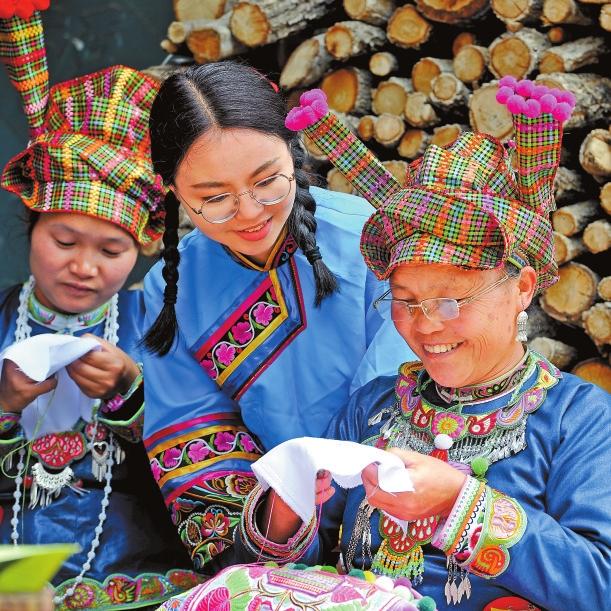走進(jìn)云南省文山壯族苗族自治州廣南縣者兔鄉(xiāng),綠美鄉(xiāng)村間,婦女們背著娃、繡著花的幸福畫面隨處可見。她們用一針一線繡出美好生活,將蘊藏著古老文化的壯繡巧妙融入時尚元素,將“指尖優(yōu)勢”轉(zhuǎn)化為“增收優(yōu)勢”。