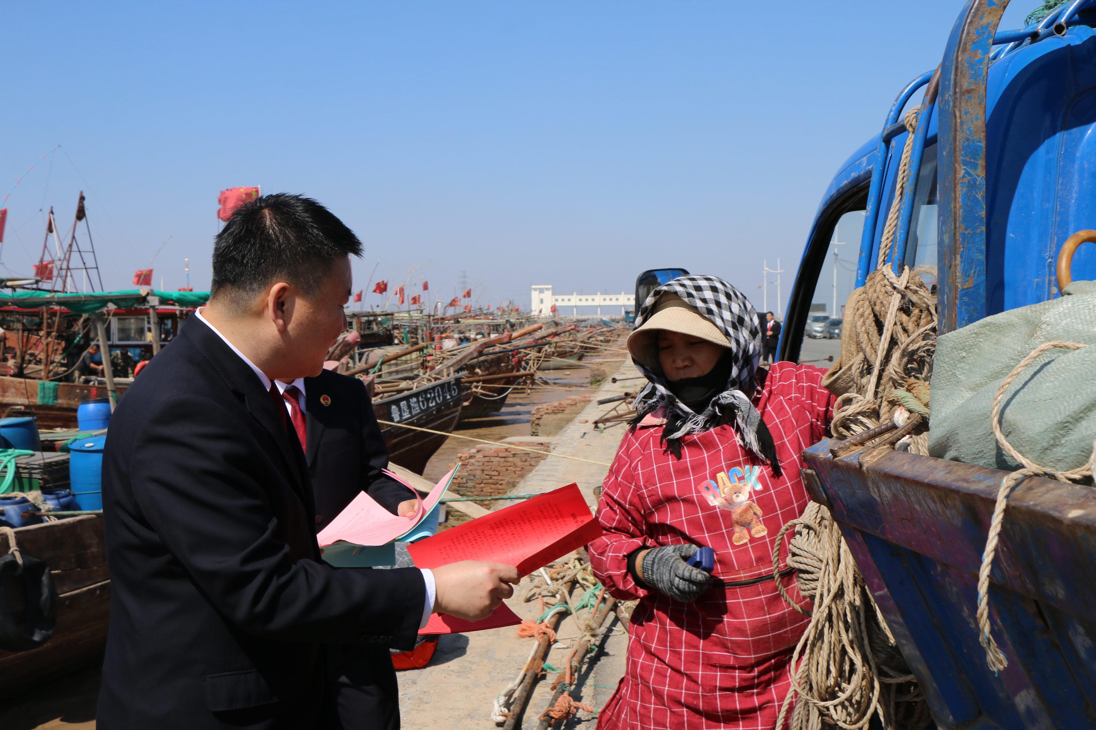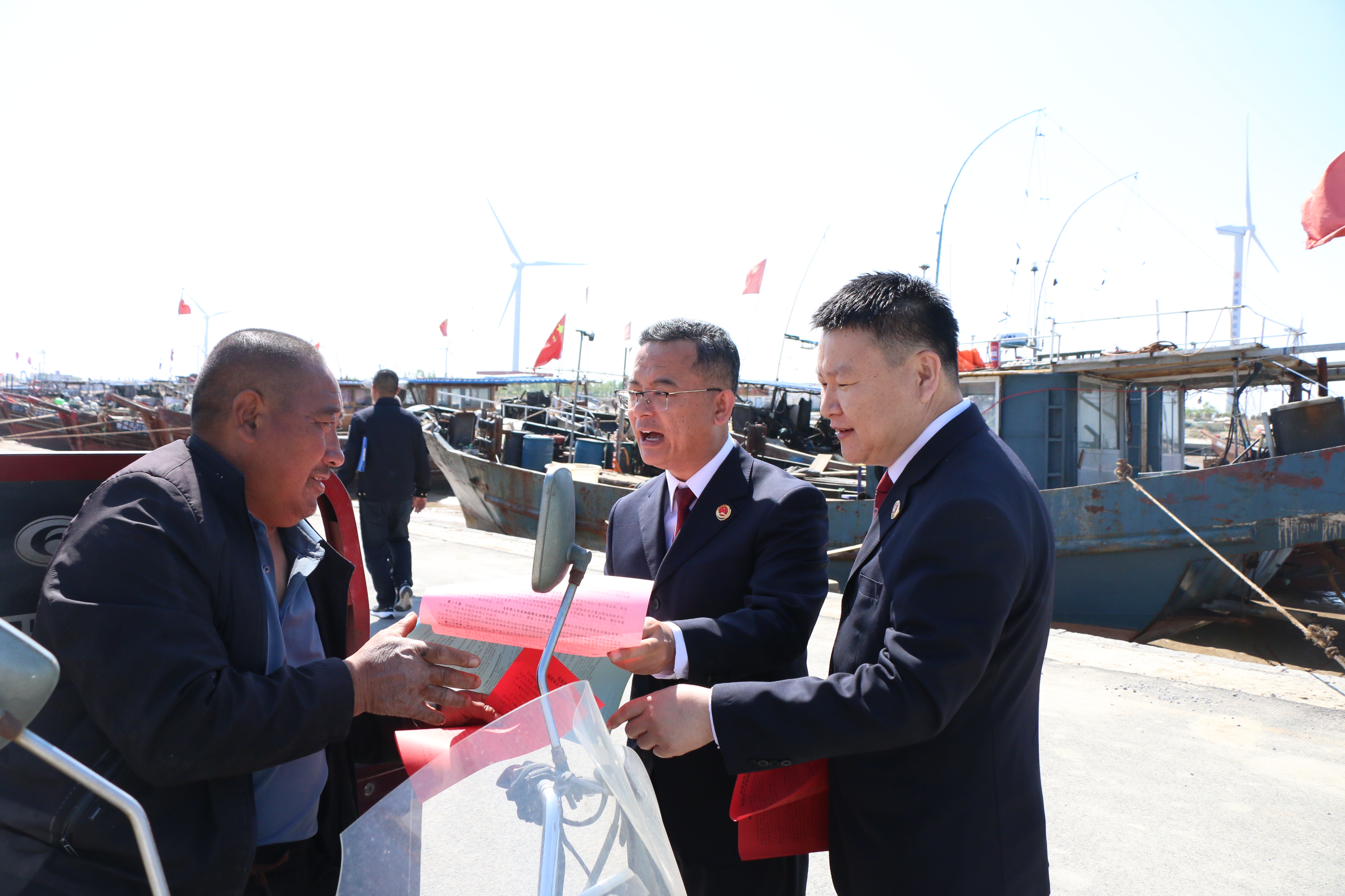 檢察官通過懸掛宣傳橫幅、發(fā)放宣傳冊、以案釋法宣講等方式,向漁民講解伏季休漁相關(guān)法律法規(guī)和案例,幫助其增強(qiáng)守法自覺和生態(tài)保護(hù)意識。