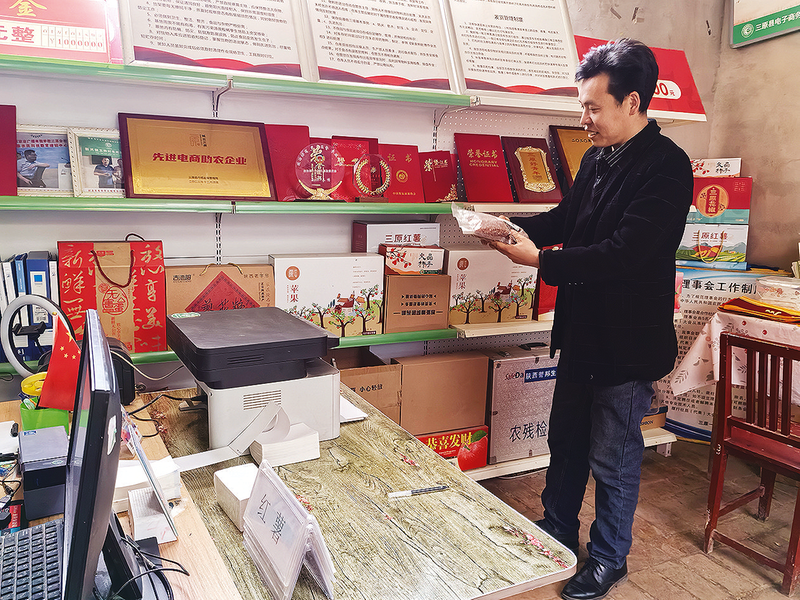 王博今年42歲,學(xué)校畢業(yè)后,曾經(jīng)打過(guò)工,也做過(guò)小生意。他本就是農(nóng)村娃,對(duì)家鄉(xiāng)有著深深的眷戀。返鄉(xiāng)創(chuàng)業(yè)的念頭一旦萌生,王博就遵從內(nèi)心的召喚,回到了家鄉(xiāng)。2018年,隨著三原縣電子商務(wù)進(jìn)農(nóng)村綜合項(xiàng)目初步落地,王博敏銳地意識(shí)到電子商務(wù)在農(nóng)村的發(fā)展前景,他嘗試著在村里開(kāi)網(wǎng)店。