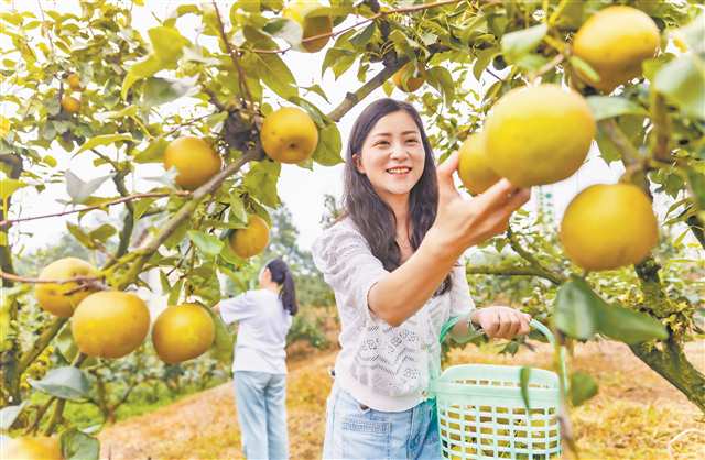 7月4日,巴南區(qū)二圣鎮(zhèn)集體村梨園,游客感受采摘樂(lè)趣 通訊員 劉紀(jì)湄 攝
