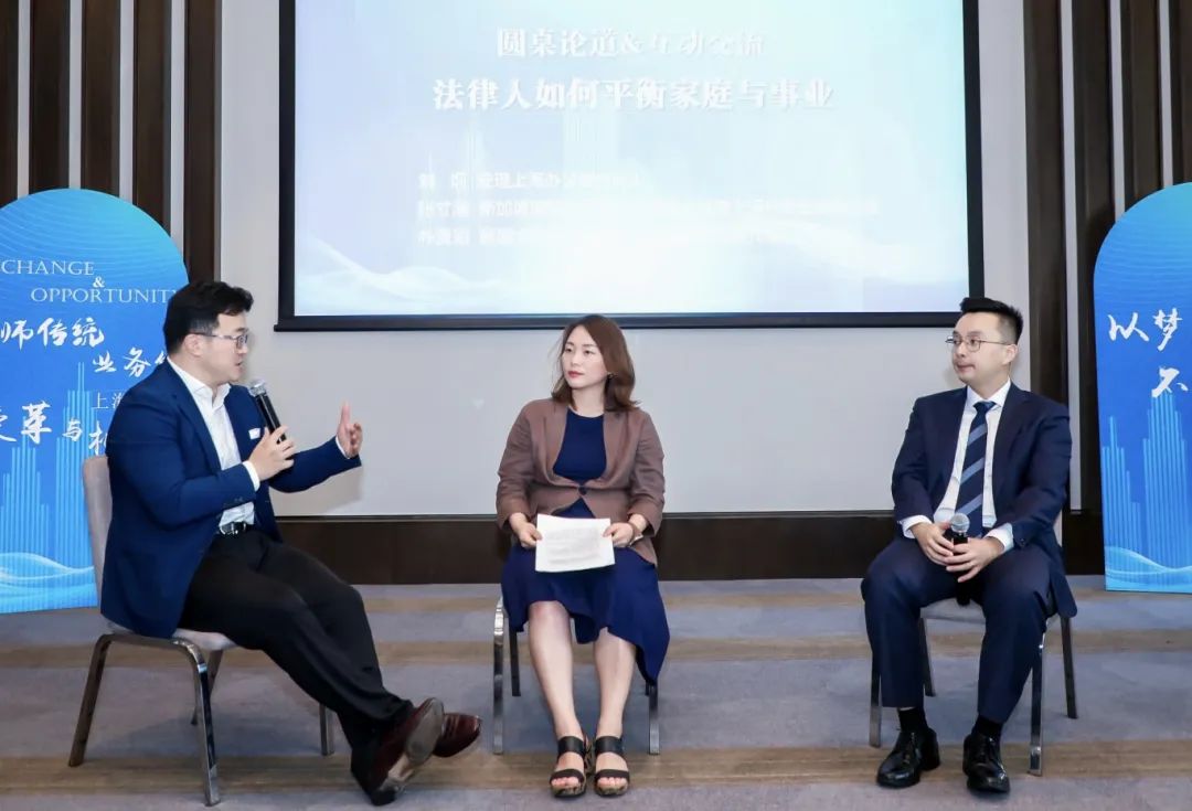 法律行業(yè)繁忙且充滿挑戰(zhàn),作為法律人,要如何設(shè)置心中的“砝碼”,既打開事業(yè)的大門,又維護(hù)好小家的溫暖?圍繞此話題,張寸淵先生、樸賢知女士以及現(xiàn)場的嘉賓和學(xué)員們交流了各自的理解與心得。劉炯律師擔(dān)任本環(huán)節(jié)主持。