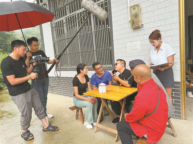 “爆笑巫溪”團(tuán)隊(duì)在巫溪縣文峰鎮(zhèn)進(jìn)行短視頻拍攝(受訪者供圖)