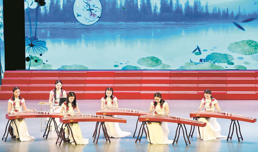 在莆田市第八屆中小學生藝術節(jié)上,莆田十中箏樂坊社團演出獲一等獎