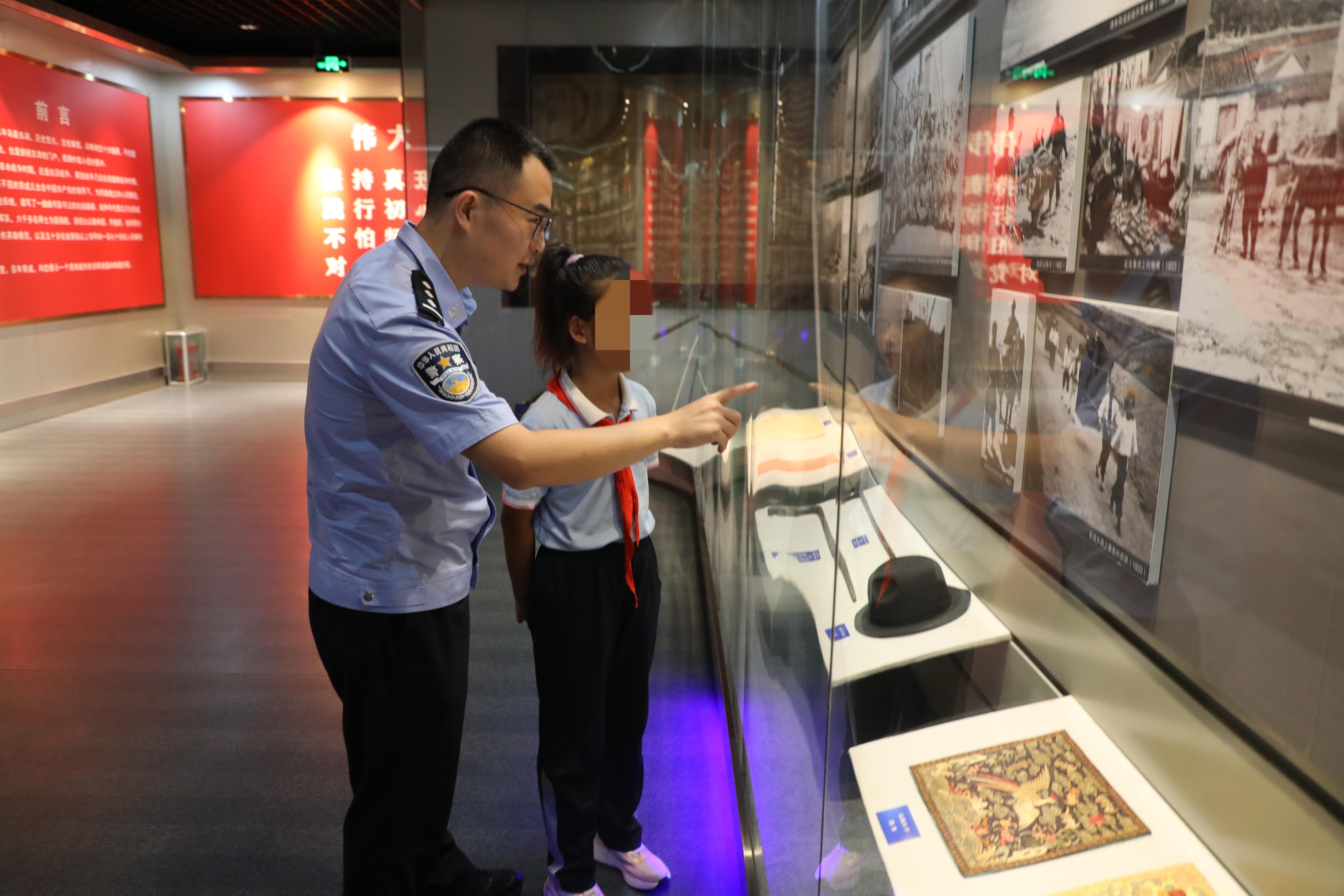 活動(dòng)中,該站民警攜手駐地小學(xué)學(xué)生一起走進(jìn)榮成市博物館“世紀(jì)榮成”展館,共同了解榮成從古至今的發(fā)展歷程,傳承紅色基因,弘揚(yáng)愛(ài)國(guó)精神。整個(gè)展館共展出700多張珍貴照片、300多件珍貴文物資料,展示了榮成自辛亥革命以來(lái)百年社會(huì)進(jìn)程、典型人物及榮成兒女取得的輝煌成就。通過(guò)一幅幅的歷史照片和抗戰(zhàn)時(shí)期歷史實(shí)物,生動(dòng)再現(xiàn)了抗戰(zhàn)時(shí)期,無(wú)數(shù)英勇無(wú)畏的中華兒女,為了民族獨(dú)立和人民解放,浴血奮戰(zhàn)、前赴后繼的壯烈事跡。跟隨著解說(shuō)員的講解,大家仿佛被帶入到那段艱苦卓絕、血雨腥風(fēng)的抗戰(zhàn)歲月,看到了戰(zhàn)爭(zhēng)背后鮮為人知的感人故事,心靈受到了洗禮,思想也得到了升華。
