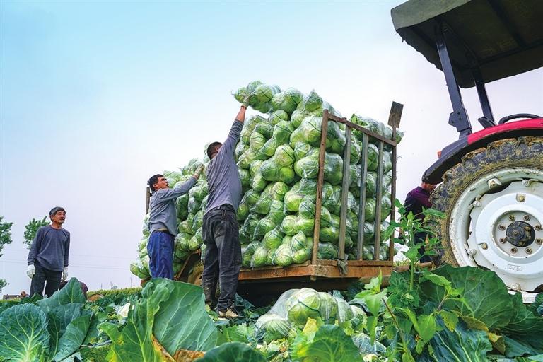鄧州市九龍鎮(zhèn)前河村菜農(nóng)正在將豐收的蔬菜整車外運 趙蕾 攝