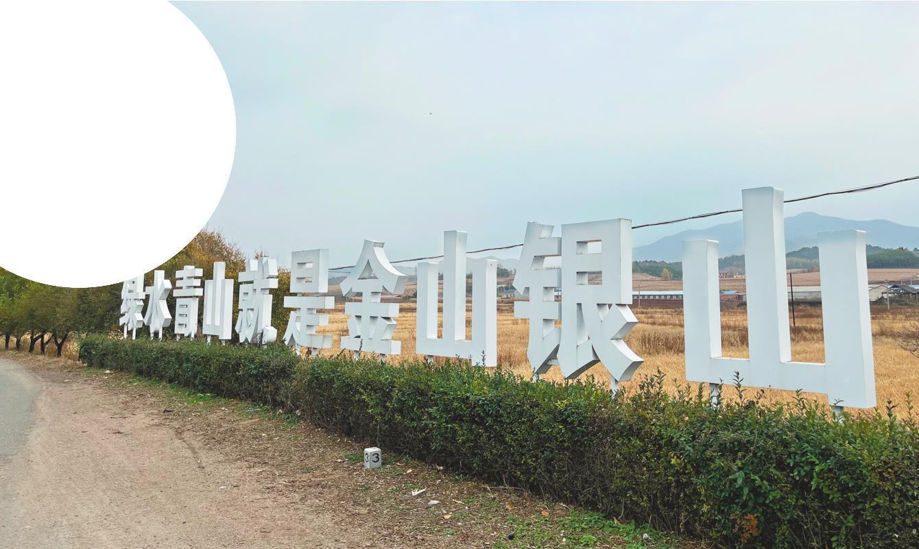 在西豐縣涼泉鎮(zhèn),路邊“綠水青山就是金山銀山”的巨幅標語格外醒目