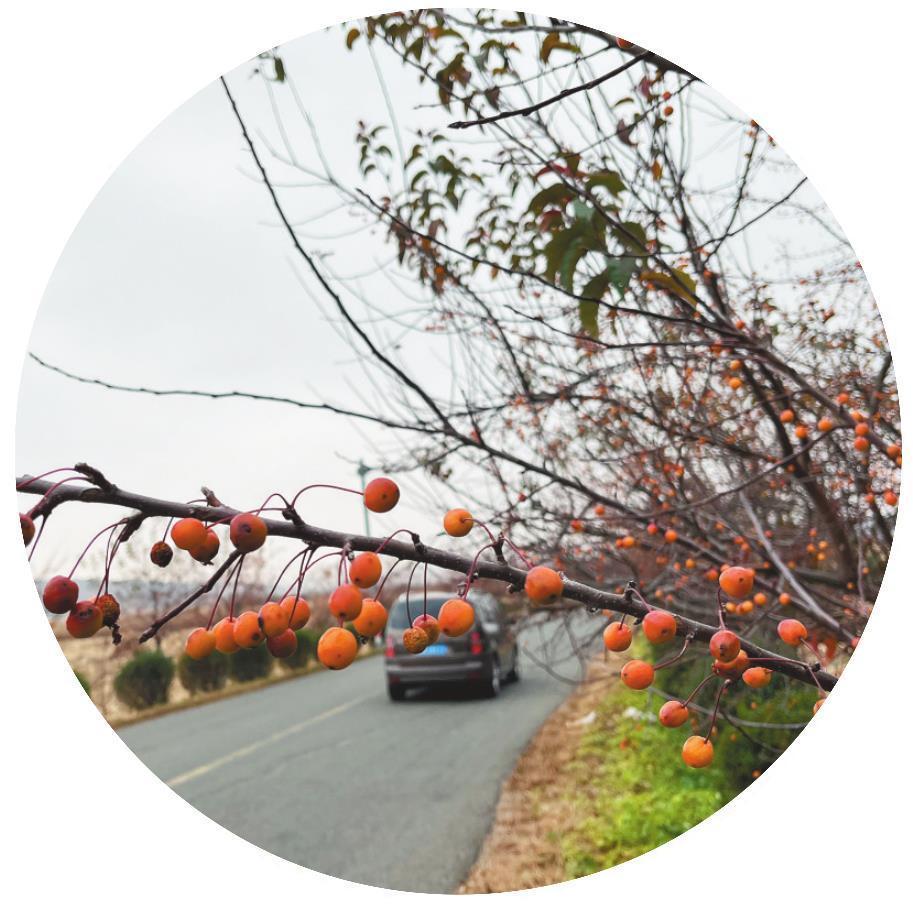 路邊的行道樹上,掛滿了紅色的果實