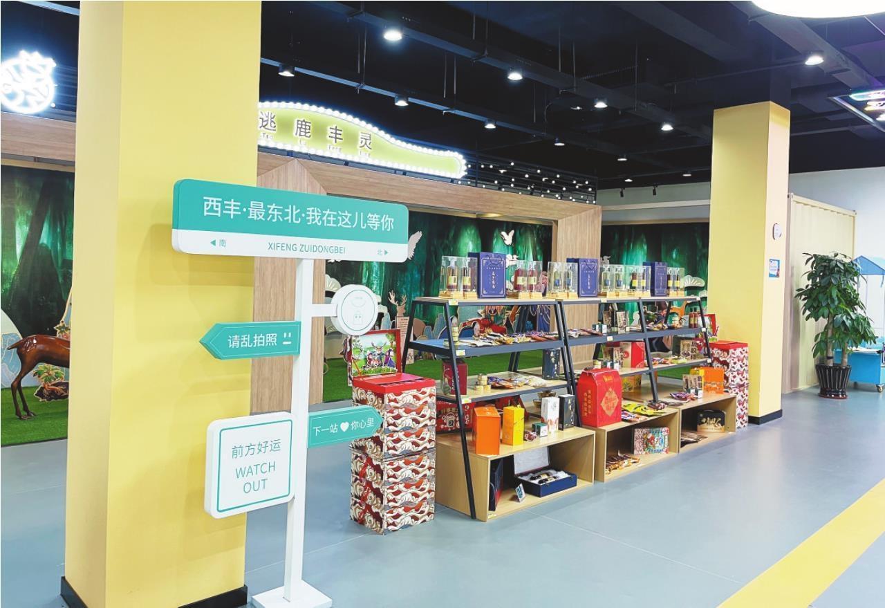 在網(wǎng)紅步行街選品中心,擺放著五大類60多個品種的西豐特產(chǎn)