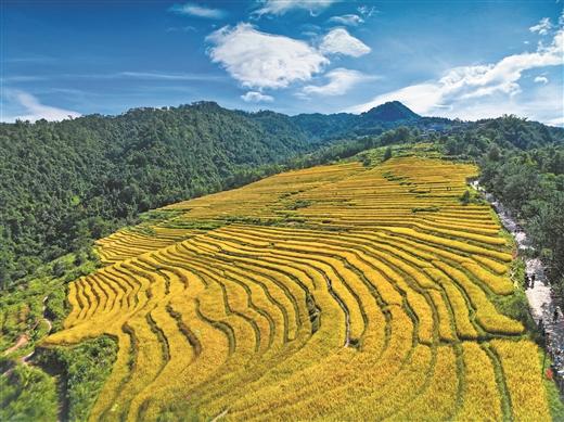 金黃的稻浪隨風搖曳,飄香的瓜果沁人心脾,辛勤的農(nóng)人載歌載舞……晚秋時節(jié),位于十萬大山北麓的廣西壯族自治區(qū)防城港市上思縣,處處彌漫著豐收的喜悅。
