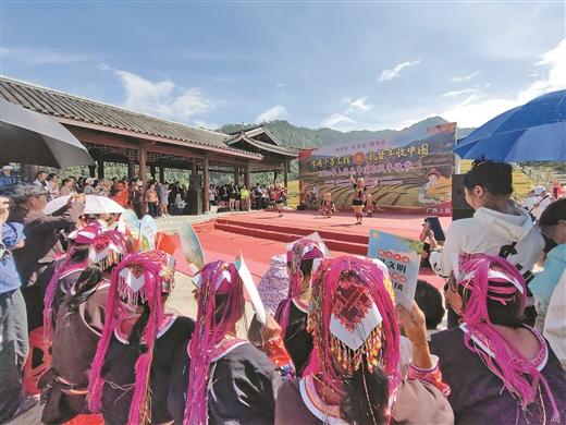 10月26日,2024年上思縣中國農(nóng)民豐收節(jié)在該縣最為偏遠的村屯——南屏瑤族鄉(xiāng)常隆村百馬屯舉辦。在這里,百馬梯田金黃色的稻浪隨風起伏,一片豐收的景象?,幾迦罕娚碇?jié)日盛裝,載歌載舞,與來自五湖四海的游客共同歡慶。