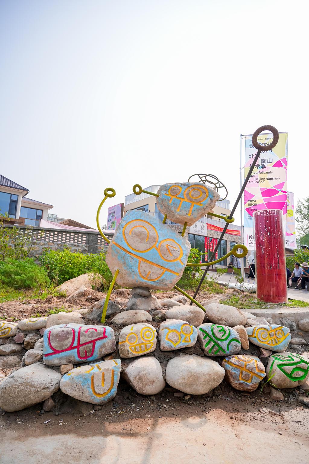 如今,南山村村口灰撲撲的石頭圍墻變成了一面豐收墻,大家把石頭涂畫成白菜、柿子、大桃等果蔬的樣子;清華美院在胡同安裝了交互感應裝置,夜晚有人走過,就會投射出一只奔跑的夜光兔子;北京林業(yè)大學用玻璃飲料瓶復現了村里曾經出土的文物石馬,名為《馬放南山》……環(huán)境變好了,加上南山藝術季的帶動效應,村民的柿子、山里紅、核桃也都賣出去了,鄉(xiāng)村建設還讓村里的石匠、瓦工有了在家門口掙錢的機會。