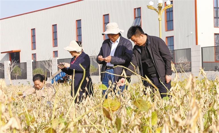 專家在岐山縣對(duì)“寶豆10號(hào)”百畝大豆種植示范田進(jìn)行現(xiàn)場(chǎng)實(shí)收測(cè)產(chǎn)(資料照片)受訪者供圖