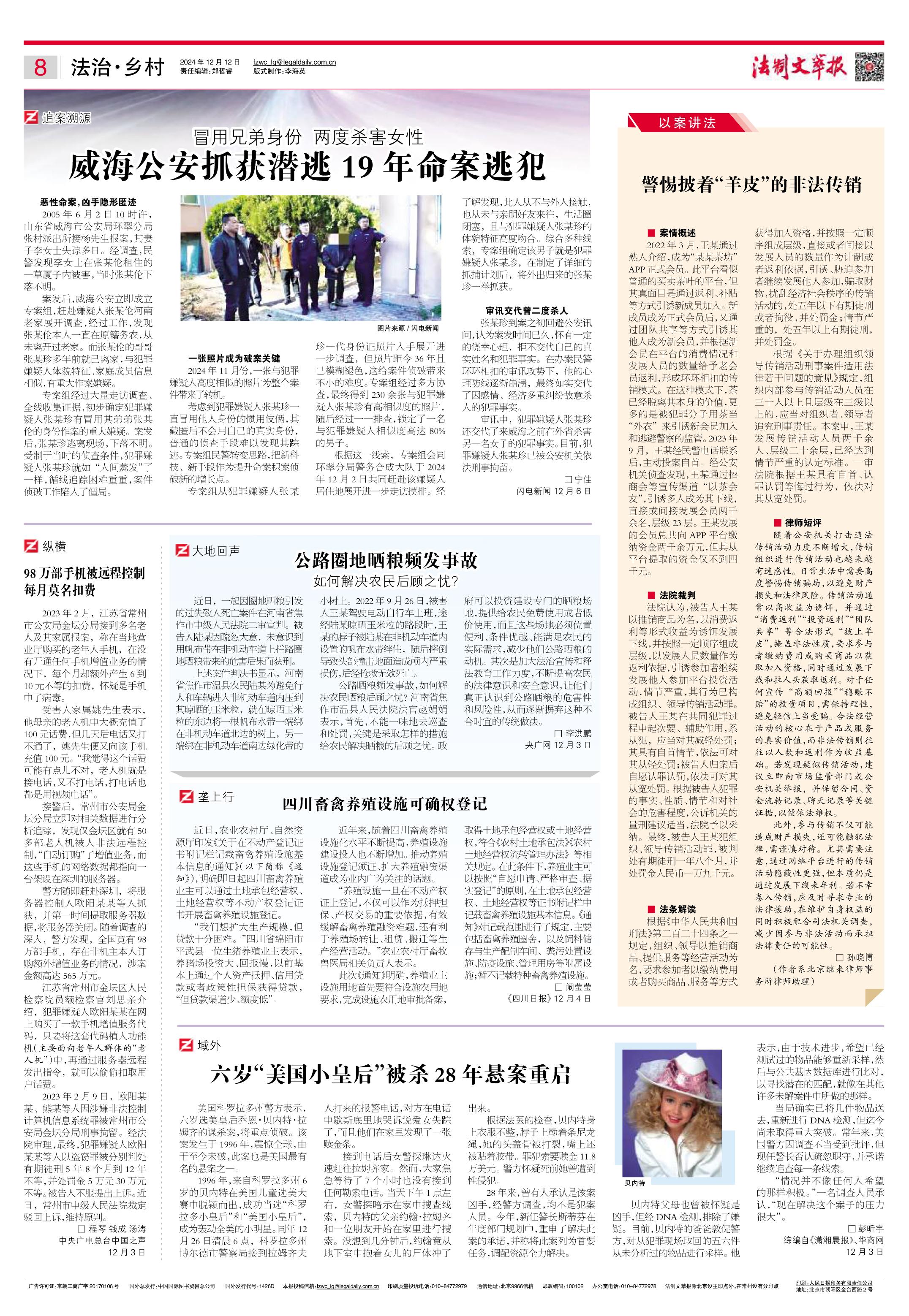 2024年12月12日《法制文萃報》總第2834期8版