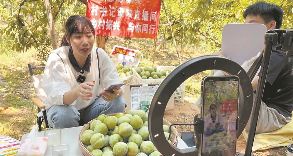 楊歡(左)在果園直播(受訪者供圖)