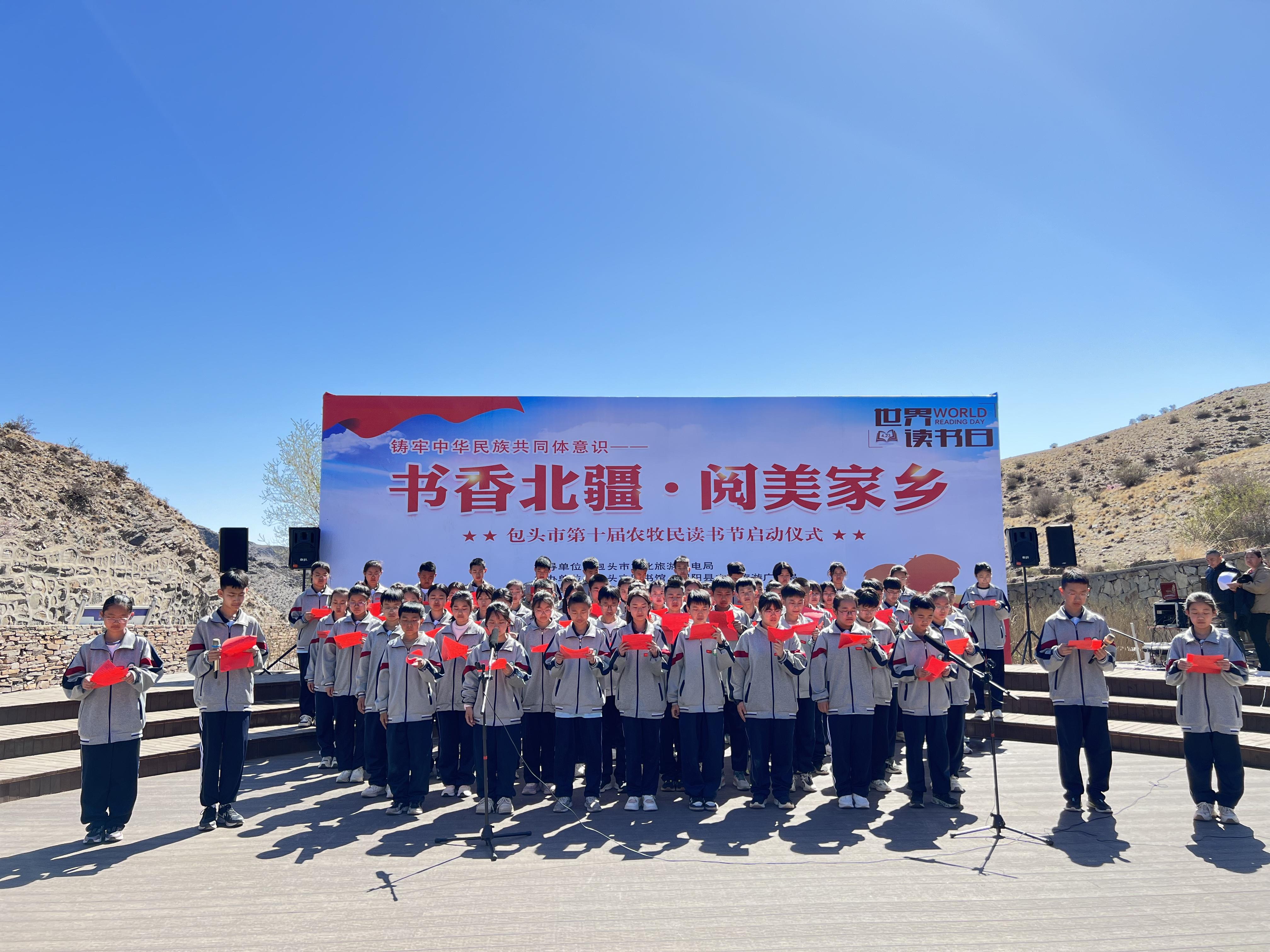 第十屆農(nóng)牧民讀書節(jié)上,固陽縣第三中學的學生開展集體誦讀活動(包頭市圖書館供圖)