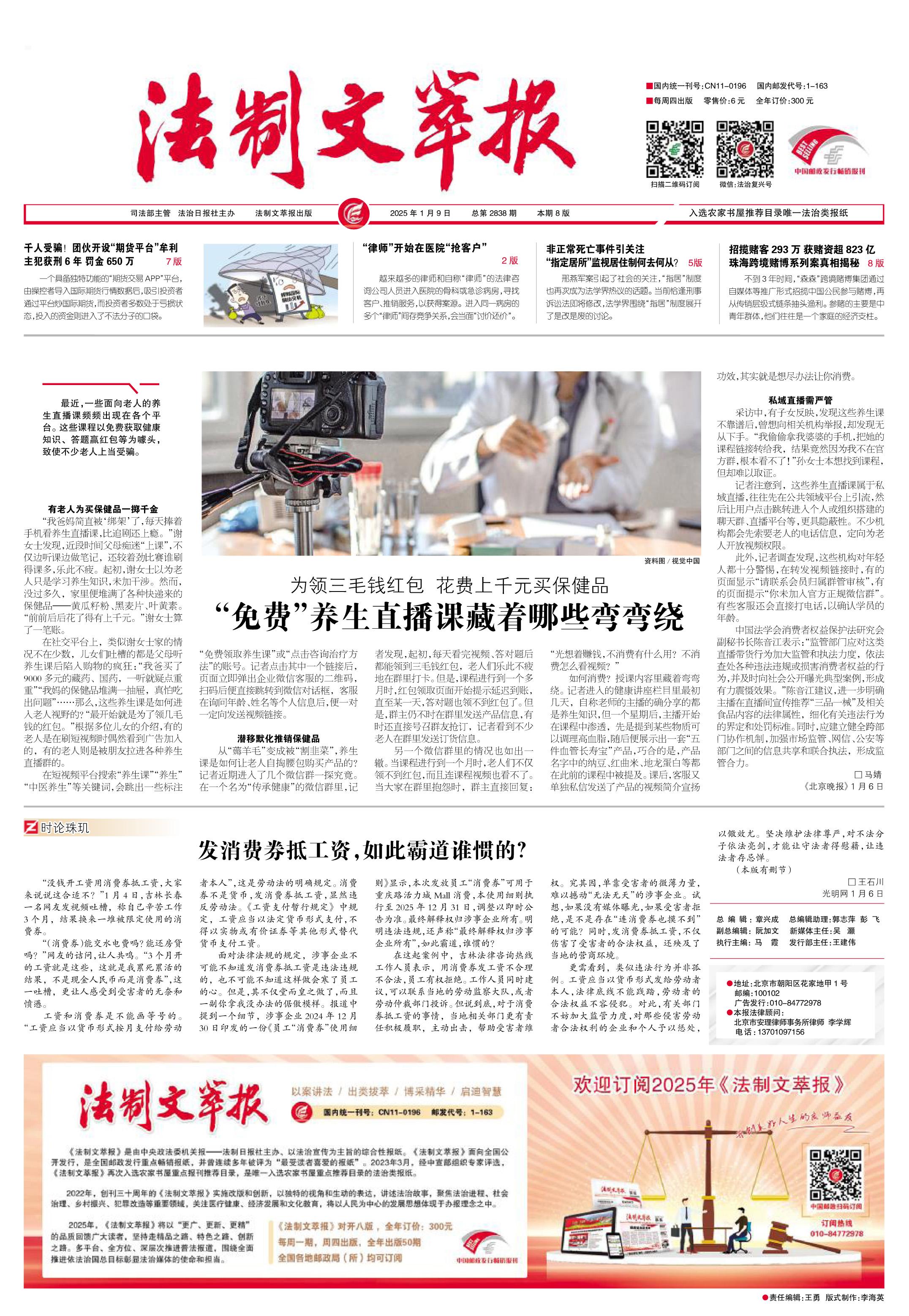 2025年1月9日《法制文萃報(bào)》總第2838期1版