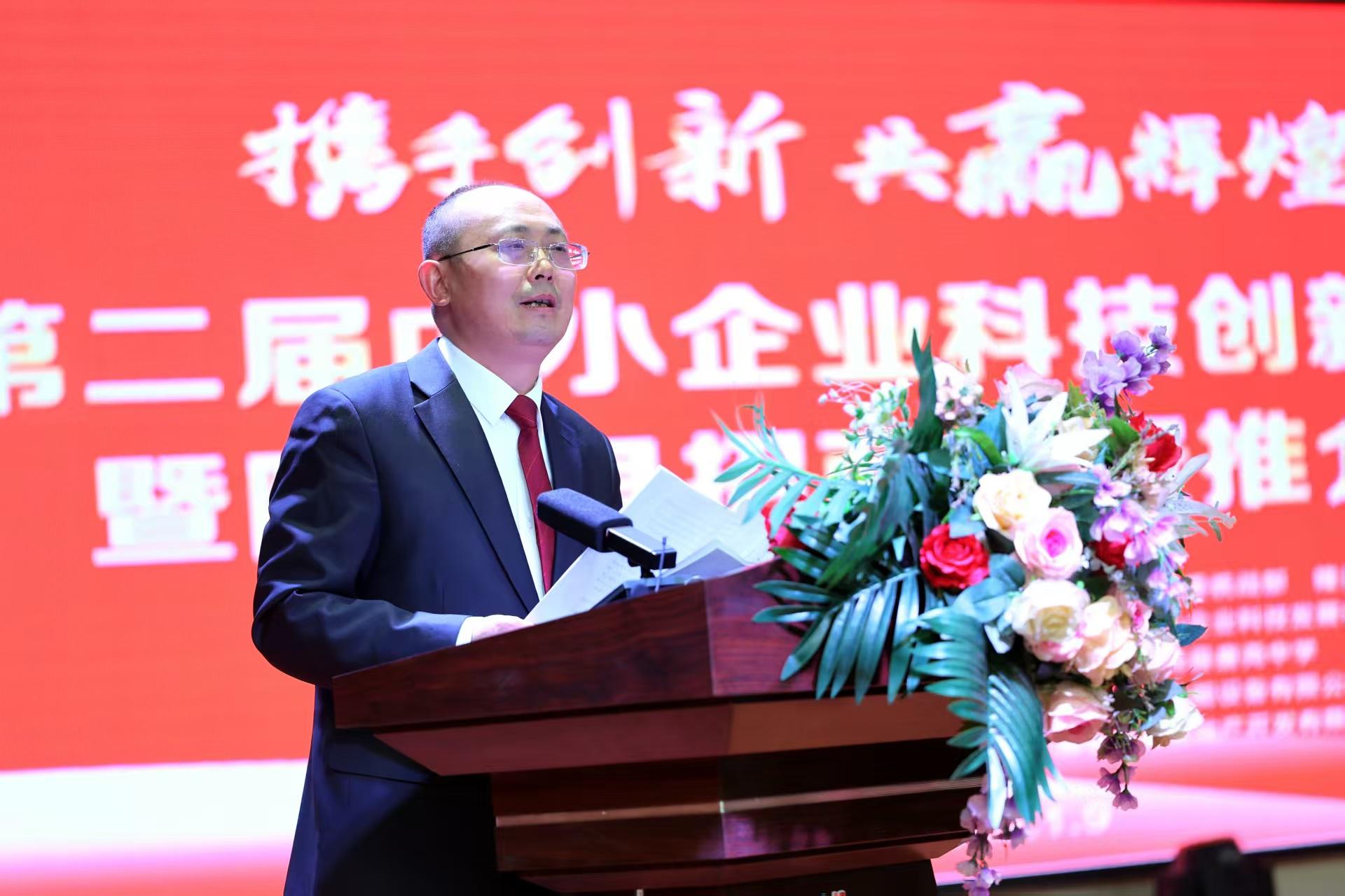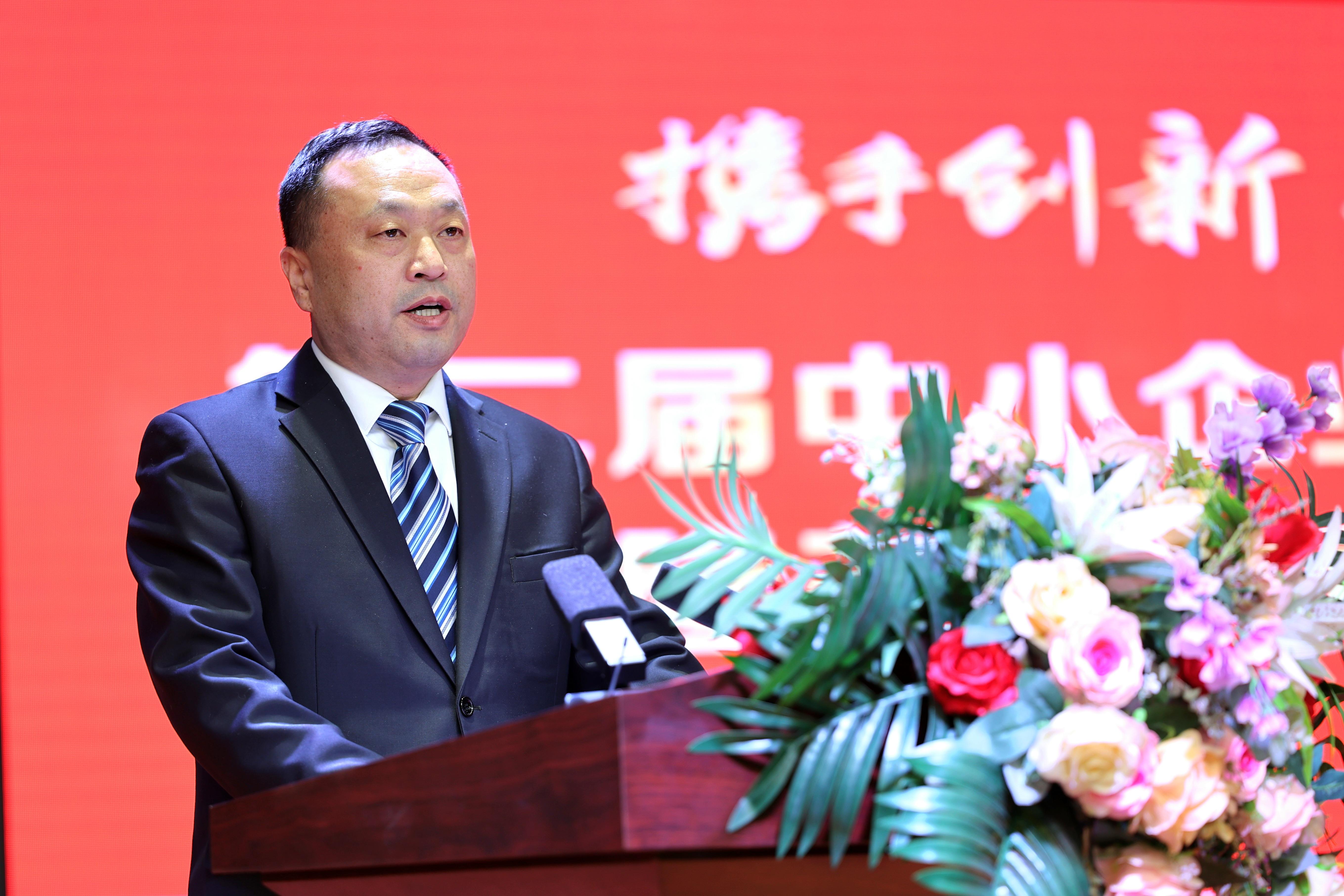 中國中小商業(yè)企業(yè)協(xié)會執(zhí)行會長任興磊致辭。他指出,中小企業(yè)是支撐中國經(jīng)濟的重要力量,我們一定要扎根祖國大地,打牢發(fā)展基礎(chǔ),掌握核心競爭力,以一往無前的奮進姿態(tài),書寫更加精彩的創(chuàng)業(yè)篇章,讓更多更具發(fā)展?jié)摿Φ膬?yōu)秀企業(yè)綻放隆堯大地,走向全國。