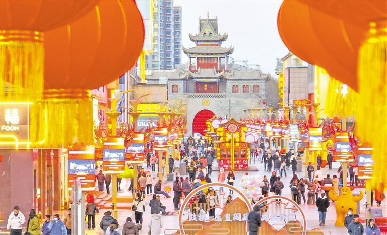 1月7日,銀川市興慶區(qū)鼓樓南街洋溢著濃厚的節(jié)日氛圍。記者 喬新宇 攝