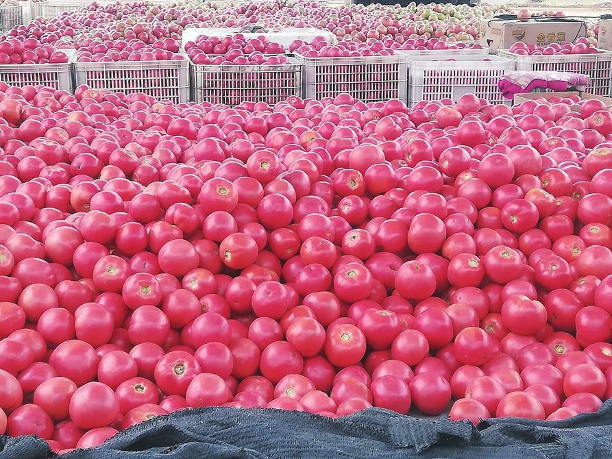 仲秋,廣袤田野間,顆顆西紅柿如紅寶石般奪目,掛滿枝頭。各地商戶紛至沓來(lái),一筐筐西紅柿映照著村民的歡顏,盡顯豐收之喜;